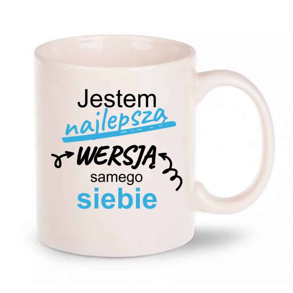 Zestaw motywacyjny z kubkiem („Jestem najlepszą wersją samego siebie”) to upominek, z którego ucieszy się każdy mężczyzna, interesujący się rozwojem osobistym.